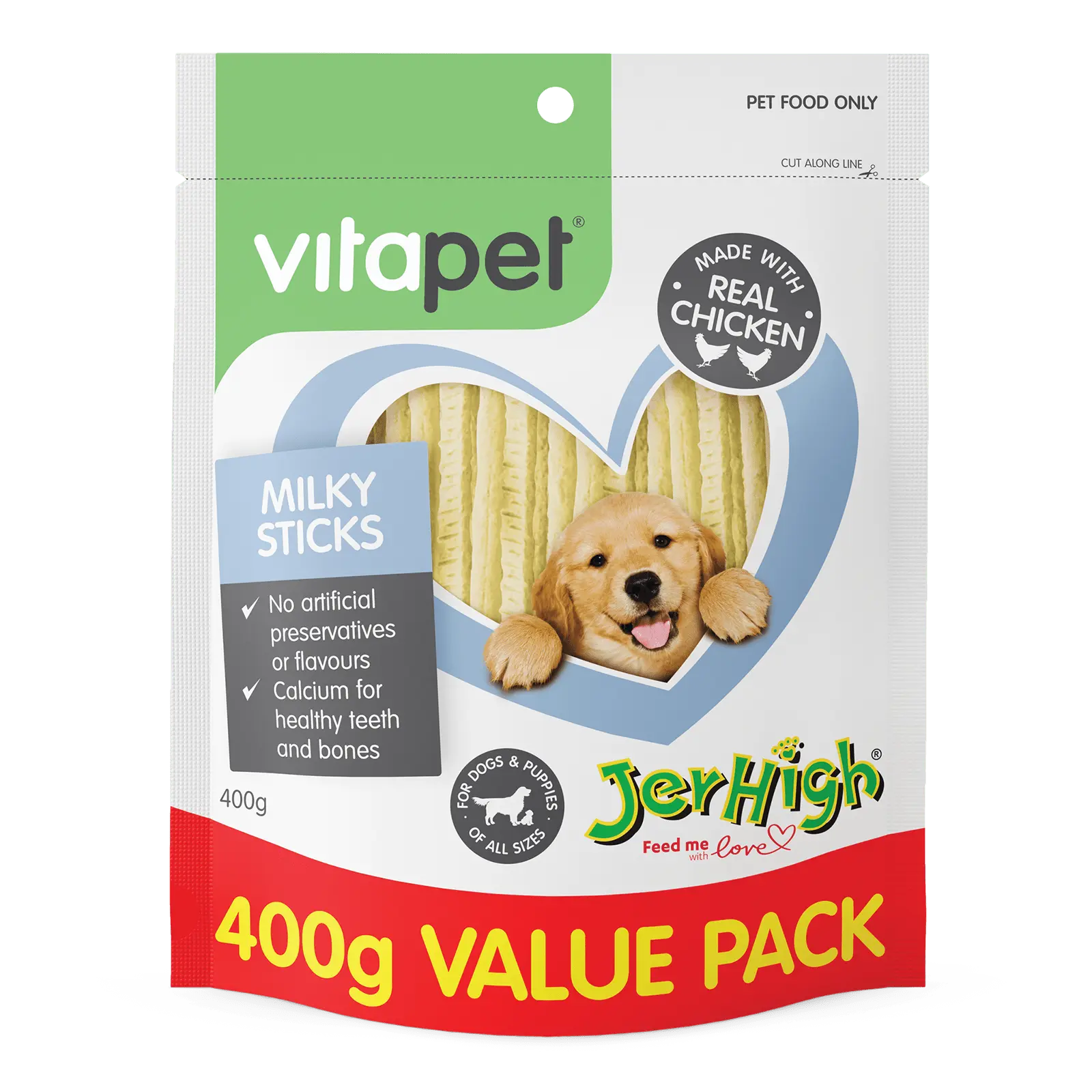Provide your furry friend with a tasty, healthy treat with the VitaPet JerHigh Milky Sticks.