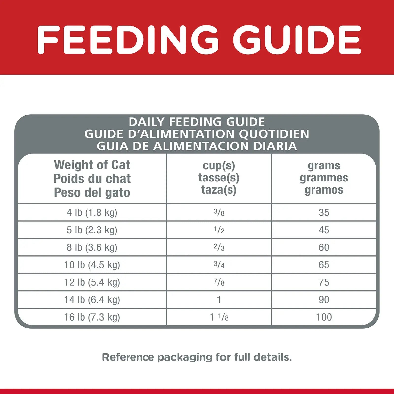 No one likes hairballs – especially your cat. That's why Hill's Science Diet Hairball Control Adult dry cat food provides nutrition to help avoid hairball formation for grown cats. This pet food made with natural ingredients nourishes your cat's skin with omega-3 and omega-6 fatty acids, while the high-quality protein supports the maintenance of lean muscles. The natural fibres are easy to digest, and work to comfortably reduce your adult cat's hairball issues.