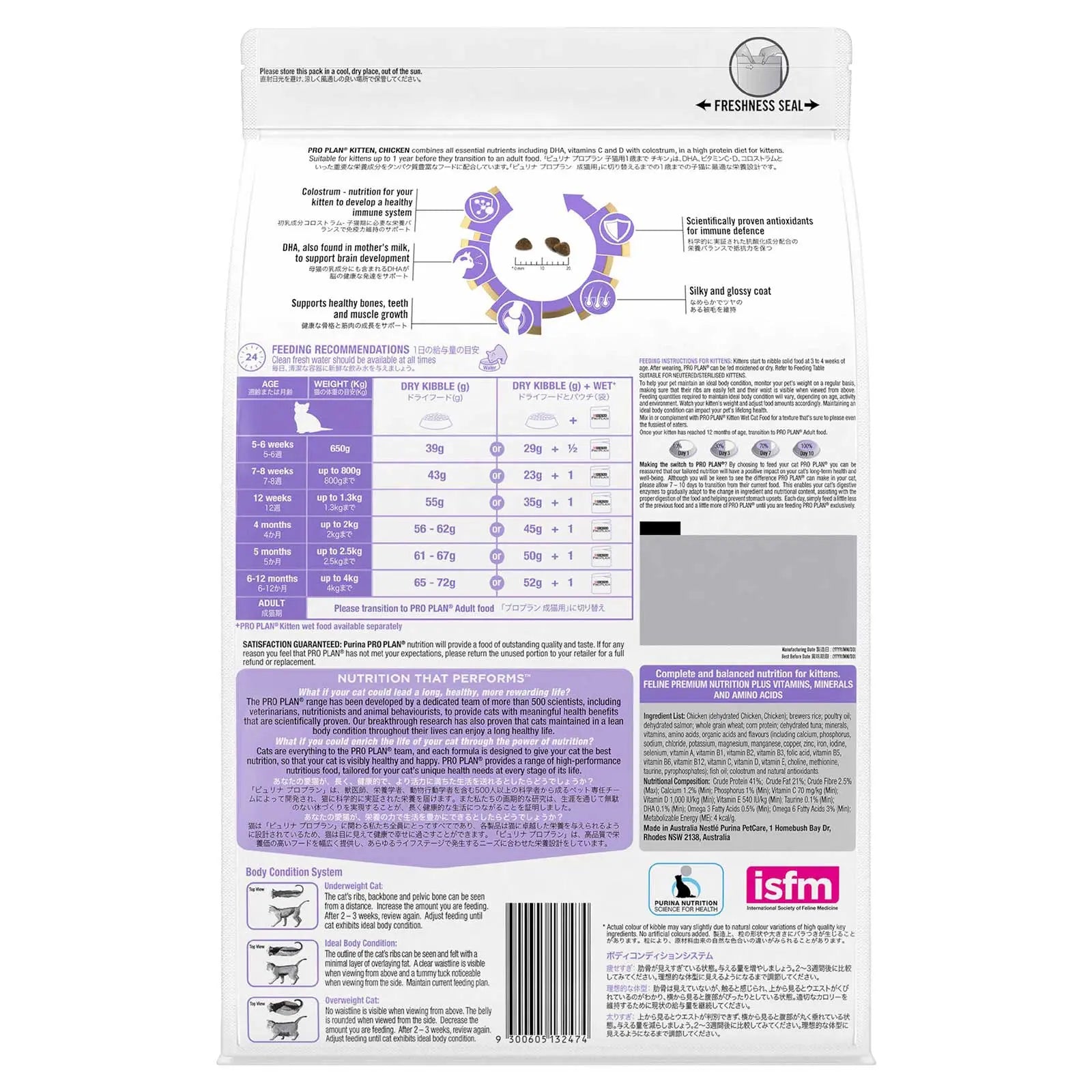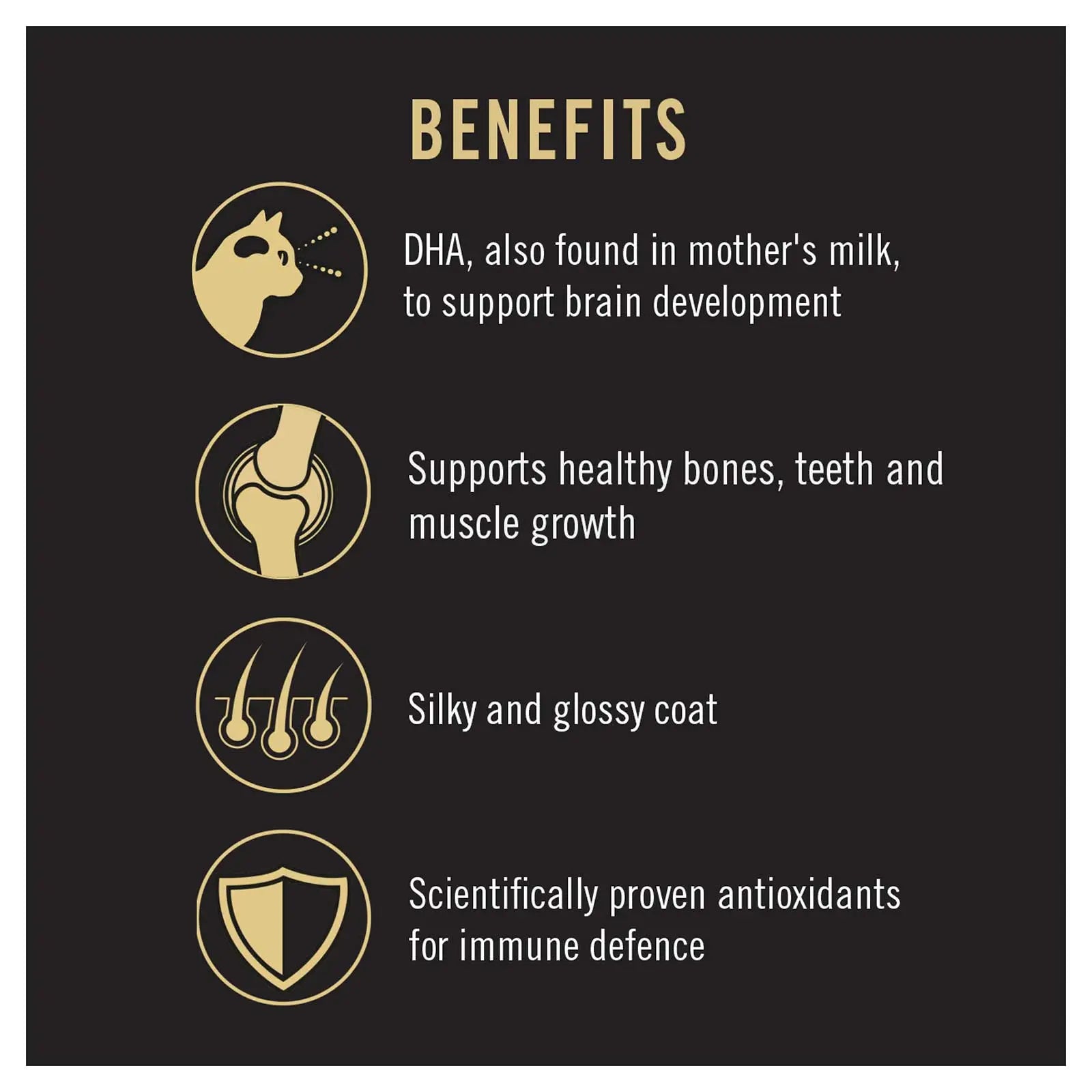 Pro Plan Kitten, Chicken combines all essential nutrients including DHA, vitamins C and D with colostrum, in a high protein diet for kittens. Suitable for kittens up to 1 year before they transition to an adult food.